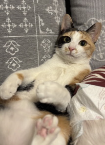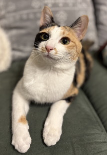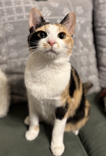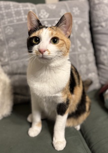 《特徴》 少し垂れ目が愛らしい美しい三毛猫さんです。 最近は薄い色合いの三毛が多い中、しっかりはっきりした3食の毛色と、ちょんもりした短い尻尾は、クラシカルな昭和の香りがします。「ザ・ジャパニーズボブテイル」です。 性格は穏やかでとても優しい子です。 人が大好きな甘えん坊さんです。夜は人に寄り添って寝ています。 横隔膜ヘルニアで危険な状態で保護されましたが、手術を乗り越えてとても元気に育ちました。 環境適応能力も高く、新しいお家にもすぐに馴染める子です。 トレイの失敗もありません。 食事はドライフードとパウチを1日4回です。 穏やかな先住猫さんとでしたら、仲良く出来ると思います。小さなお子様のいない、お留守番の短いご家庭にお願いしたいと思います。