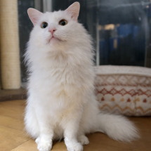 《特徴》 真っ白でフワフワな毛並みがとてもとても美しいアンドレ君。 高貴なお顔立ちがまるでおとぎ話に出てくる王子様のようです。 好きなオモチャはネコジャラシです。 穏やかな性格ですが、これまで人の愛を受けずに育ってきたので、とても繊細で怖がりの面があります。 初めての人や場所に慣れるには少し時間がかかります。アンドレ君のペースでゆっくり関係を築き上げて行って下さい。 食事はドライフードとウエットフードのミックスを1日2回です。 トイレの失敗はありません。 劣悪な多頭飼育現場を生き抜いてきたアンドレ君。これからは愛情たっぷり受けて穏やかに安心して暮らしていって欲しいとボランティアメンバー心から願っております。 長毛種ですので、ブラッシングなどのお手入れを欠かさずお願いいたします。 お留守番が少なく、小さなお子様がいらっしゃらないご家庭を希望します。 また、たばこの副流煙は猫のリンパ腫の発症を高めますので、電子タバコを含めご家族に喫煙者のいらっしゃらないご家庭にお願いしたいと思います。
